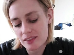 Blonde euro babe makes out while masturbating