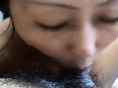 Girl's Hairy Interracial Fun with Multiple Orgasms
